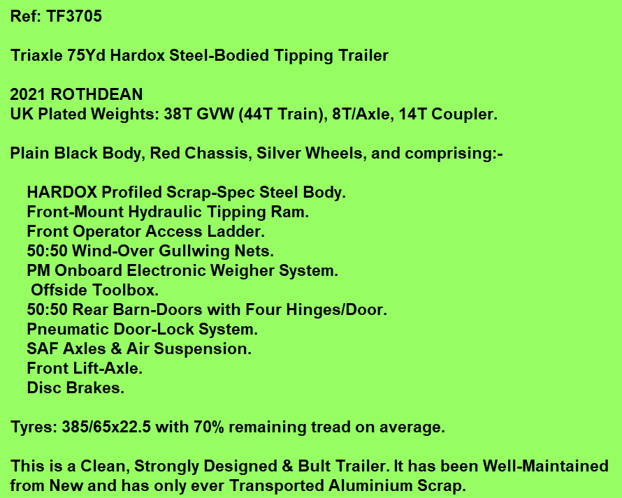75Yd HARDOX Scrap-Spec Tipping-Trailer For Sale