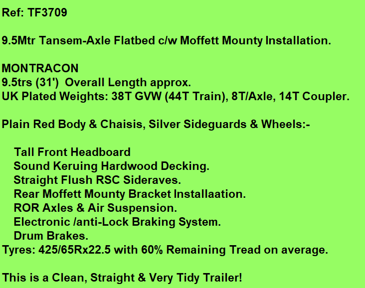 Short Tandem MOFFETT MOUNTY Flatbed Trailer For Sale