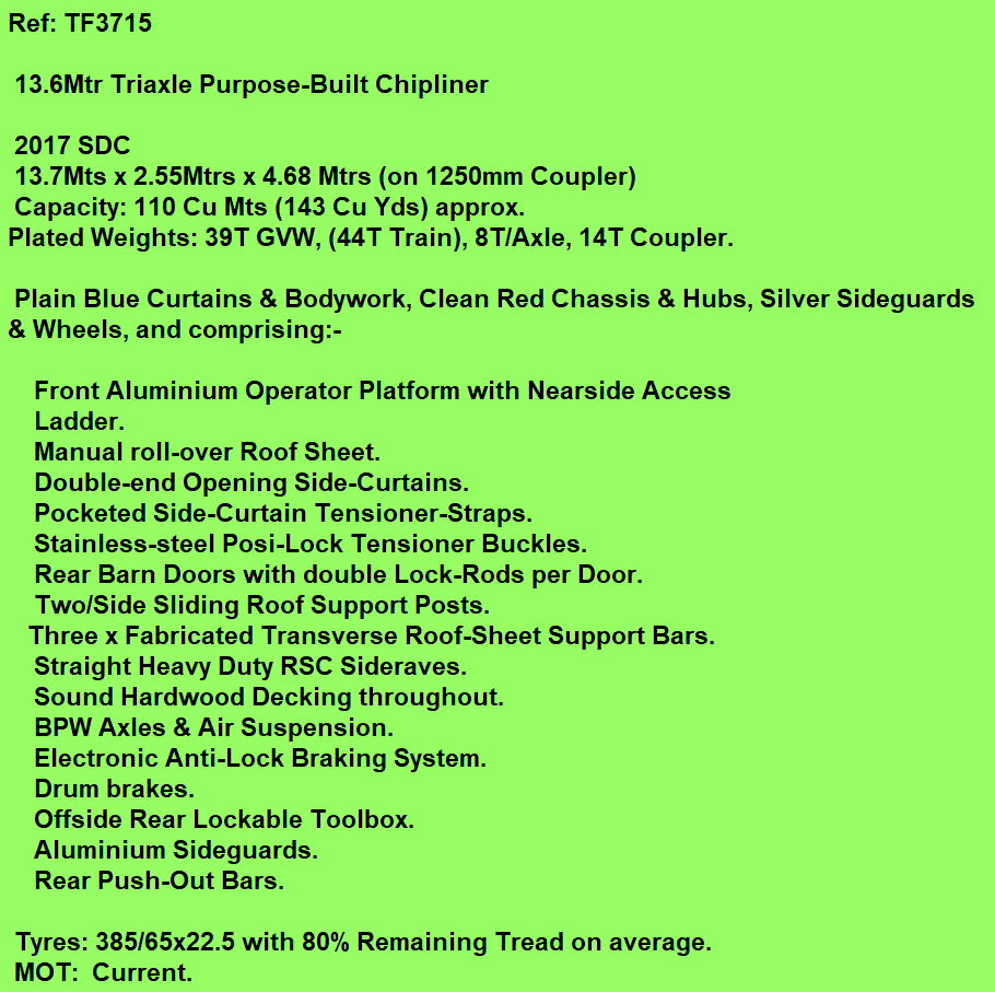 2017 SDC Triaxle Chipliner Trailer For Sale