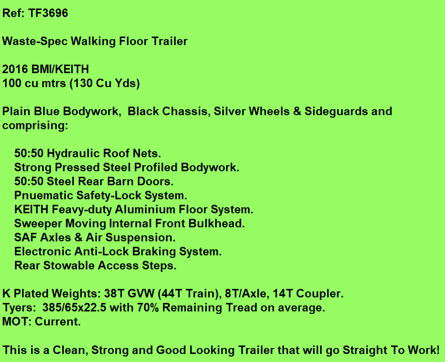 Waste-Spec Walking-Floor Trailer For Sale